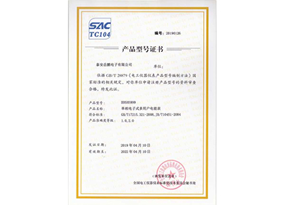 產(chǎn)品型號證書