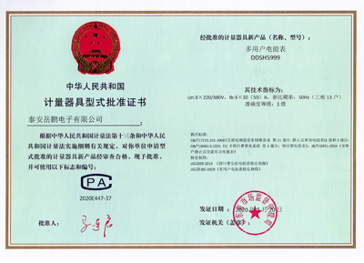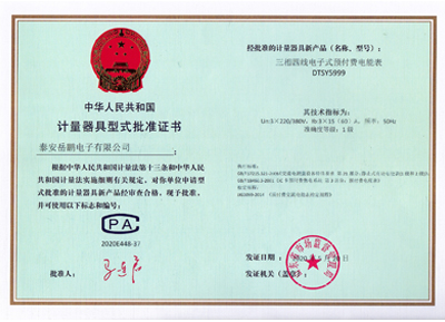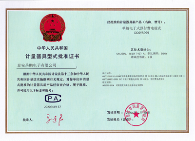 單相電子式預(yù)付費(fèi)電能表證書