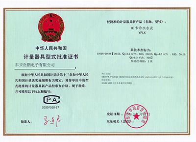 IC卡冷水水表證書